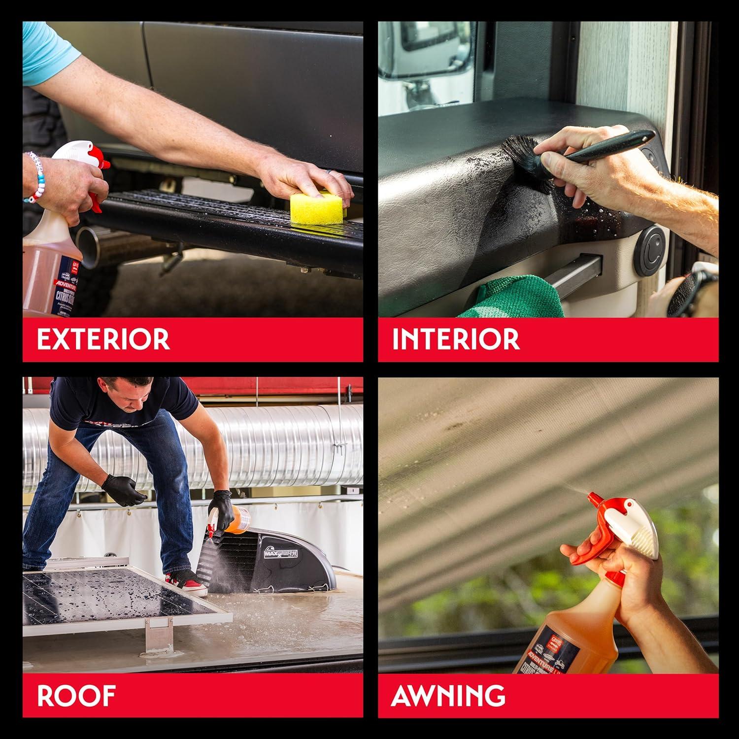 Hit the road with confidence and keep your home-on-wheels looking its best with our Multi-Purpose Citrus Cleaner—an essential addition to your RV cleaning supplies. This powerful D-limonene formula works fast to remove black streaks, engine grease, road grime, and more. Pre-diluted at a 4:1 ratio, this boat hull cleaner is ready to use straight from the bottle; no mixing or measuring needed. This camper cleaner is safe on a wide range of surfaces including fiberglass, gelcoat, vinyl, chrome, rubber, plastic, and even carpet, making it a fantastic all purpose car cleaner for both interior and exterior use. Need an effective RV awning cleaner or a gentle yet tough RV carpet cleaner? This one product does it all. It also doubles as a camper exterior cleaner, tackling tough buildup on your trailer’s surface so you can enjoy a clean, polished look wherever you roam. From long road trips to weekend getaways, this versatile cleaner saves you time and effort so you can focus on the adventure. Trust it to keep your RV, camper, or trailer spotless and ready for the next journey. One solution—many applications.