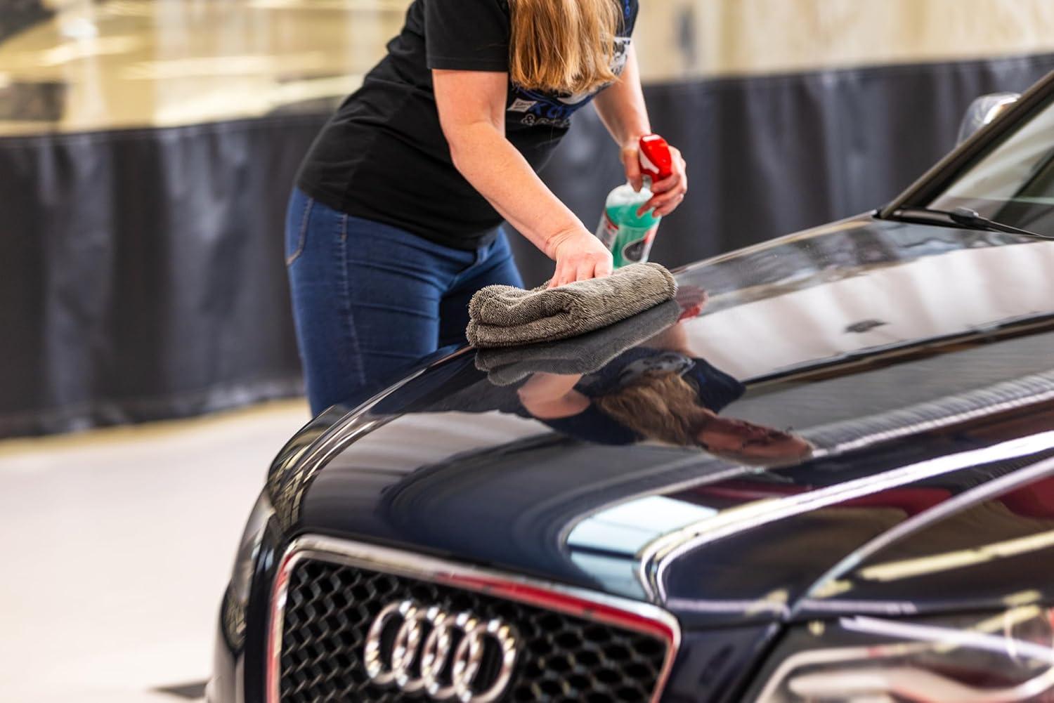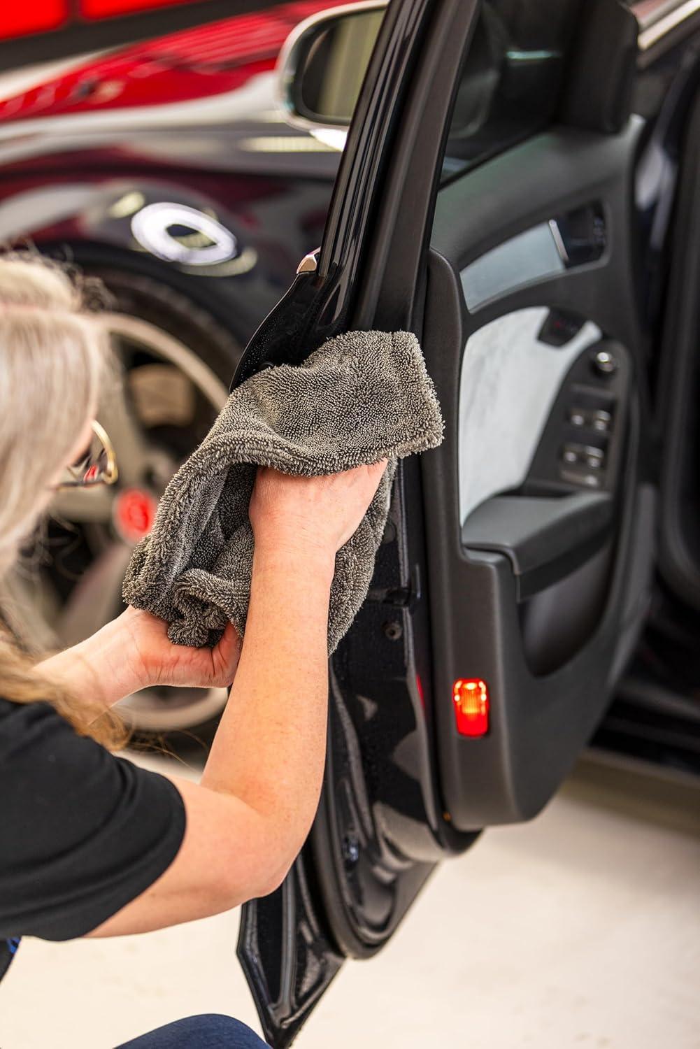 Struggling to maneuver towels that are too big for the job, but still want extreme water-holding power? You need the PFM Ultrafast Edgeless Towel! Its massive 1500 GSM (grams per square meter) provides supernatural levels of absorbency, holding almost 3 lbs. of water within its compact and nimble 16″” x 16″” size. This size makes gliding across the contours of your car a breeze, perfect for buffing off excess detailers, spray waxes, and wiping away our Rinseless Wash on those lower body panels without dragging on the ground. Additionally, its edgeless, premium 70/30 twist-pile microfiber is gentle on paint, giving you peace of mind and a streak-free finish.