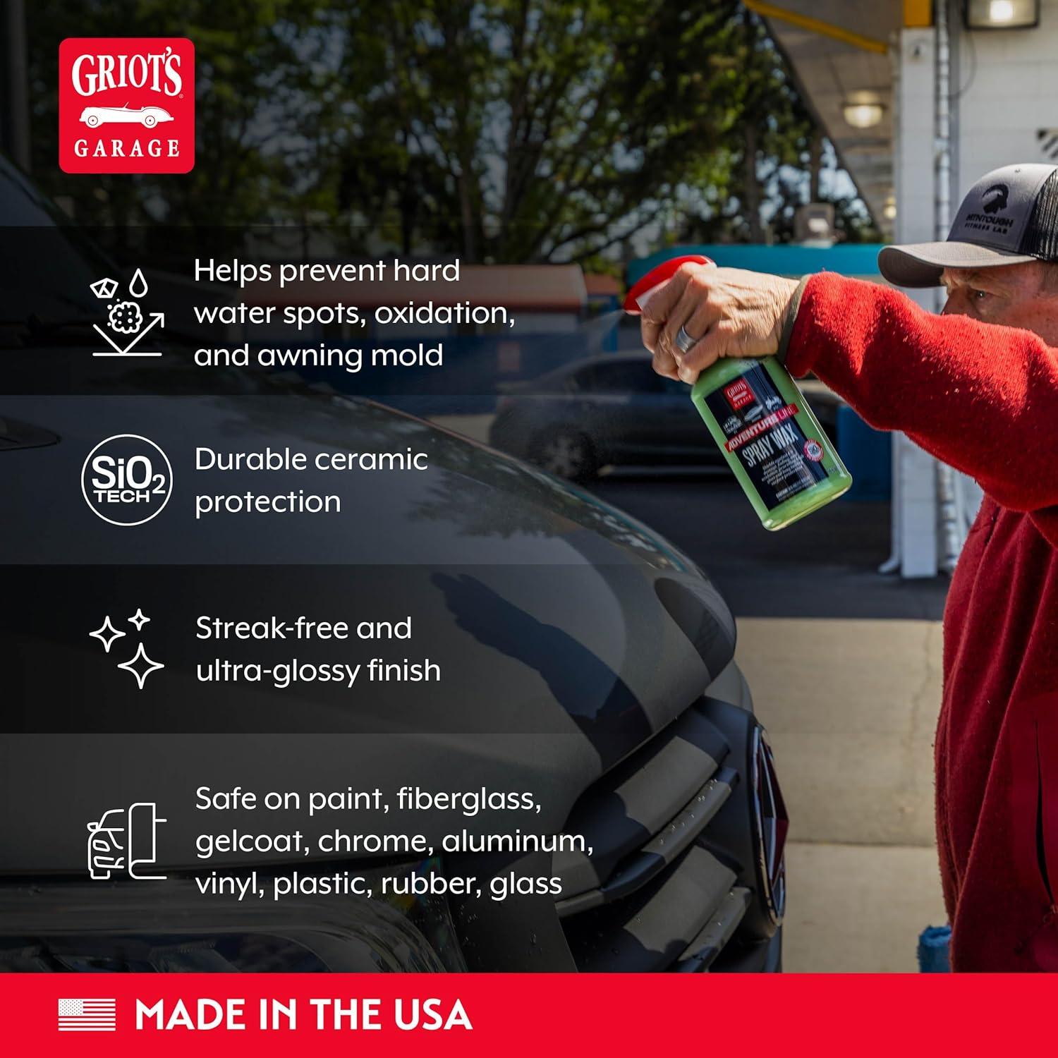 Over the years, your RV sees a lot—sun, rain, dirt, and countless miles. And with all those adventures come signs of wear. Don’t let your RV lose its luster. Bring back that like-new look with Spray Wax, the go-to RV polishing wax that protects and enhances in one easy step. This spray car wax polish creates a durable, ultra-hydrophobic barrier that resists water, dirt, and road grime. The advanced ceramic wax layer shields your RV from the sun's rays, helping to prevent fading, oxidation, and black streaks while making routine maintenance a breeze. Whether you’re detailing a camper, trailer, or even a boat, this RV marine wax is safe for fiberglass, gelcoat, vinyl, and more. Use it to touch up your roof, vinyl awning, or body panels. Apply after cleaning with Multi-Purpose Citrus Cleaner to lock in shine and extend surface life. Ideal as an RV camper wax or RV boat wax, this formula gives you a sleek finish and lasting protection so you can spend more time exploring and less time cleaning.