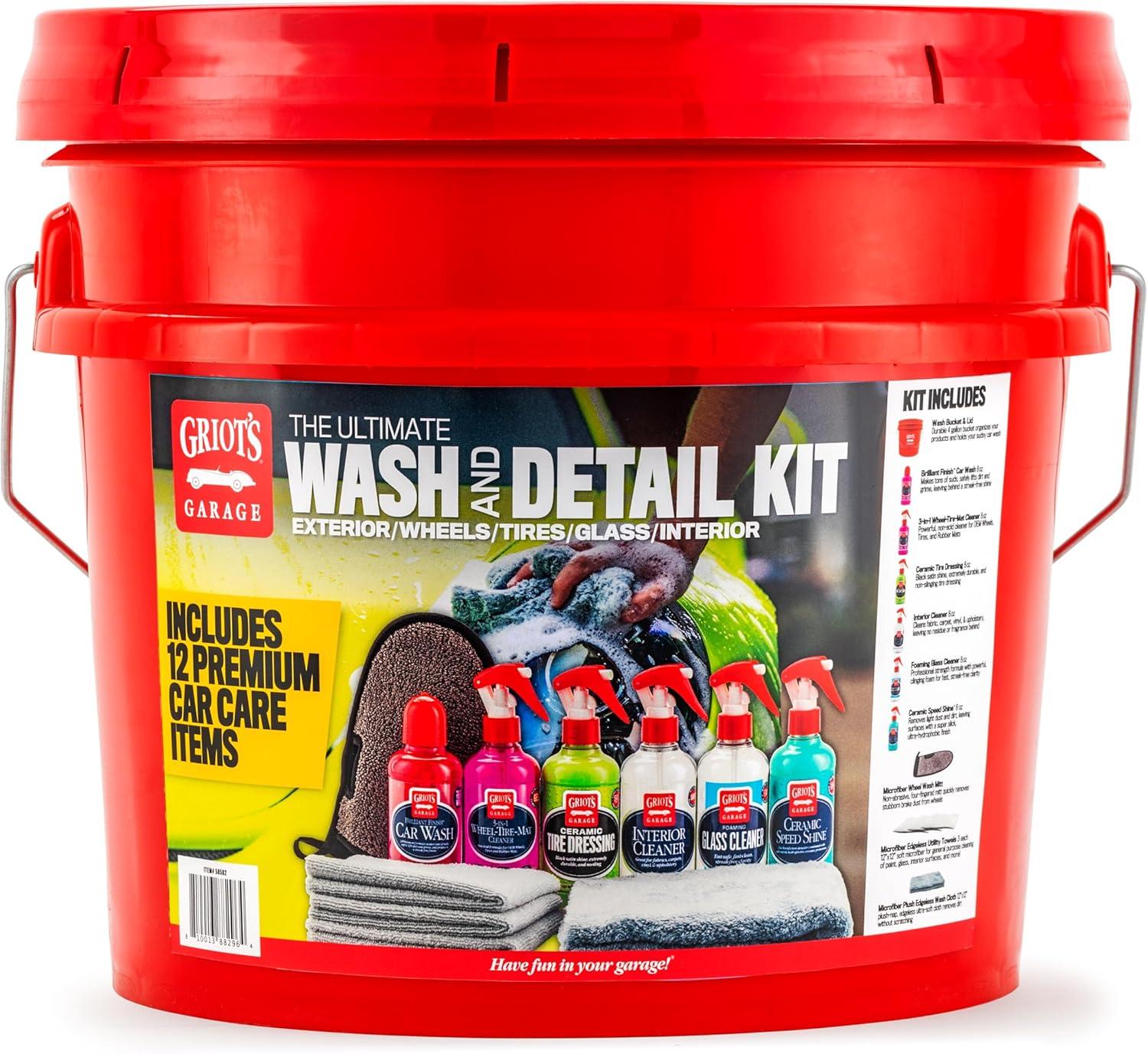 The Ultimate Wash & Detail Kit provides you with 12 premium car care items for cleaning your vehicle at home or on-the-go! This kit includes 6 customer favorite car care products that allow you to clean the exterior, interior, tires, glass, and your wheels! Accompanying the car care products are microfiber towels, a washcloth, and a wheel wash mitt for safe cleaning. The included 4-gallon wash bucket and lid double as a convenient storage solution when the products are not in use. The Ultimate Wash & Detail Kit is a perfect solution for detailing enthusiasts and beginners alike!