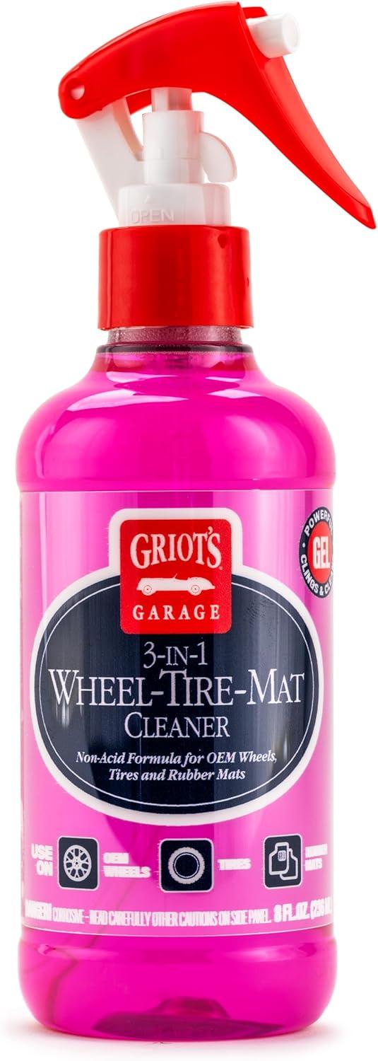 6 favorite car care products in 8 oz sizes for your vehicle's exterior, interior, tires, glass, and wheels